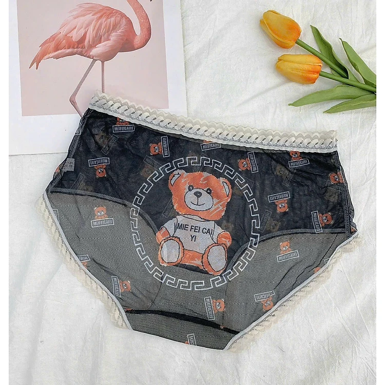 Quần lót QV368 lưới lưng cao thoáng mát hình gấu dẽ thương