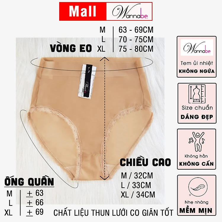 Quần lót thun lạnh cao cấp Wannabe QLT06 quần gen nhẹ lưng cao, ôm bụng đinh hình tôn dáng