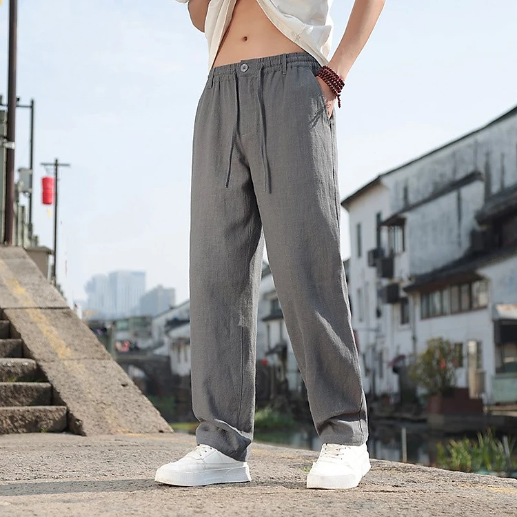 Quần nam ống rộng chất linen vải đẹp mềm thoáng mát, thiết kế dây rút kết hợp khóa kéo độc la Haint boutique Qd11