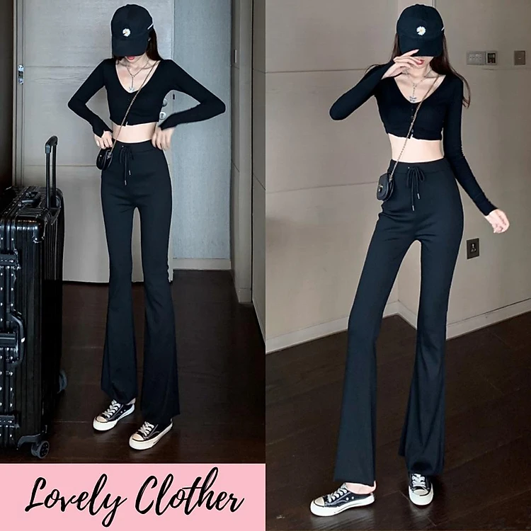 • Tên sản phẩm: Quần nữ cạp cao, quần nữ ống bass dây thắt eo ống loe chất thun tăm cao cấp màu đen size S M L SKUQ-44