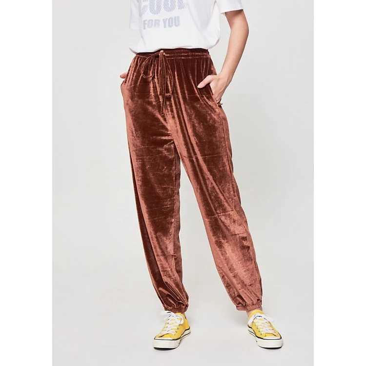 Quần Nữ Nhung Lưng Thun Luồn Dây Marc Fashion VN064418 - Nâu