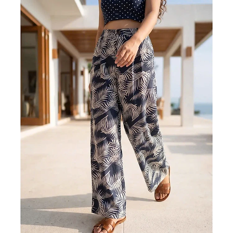 Quần Ống Rộng Linen Lá Cọ Xanh Navy Pan055 Thời trang Hity