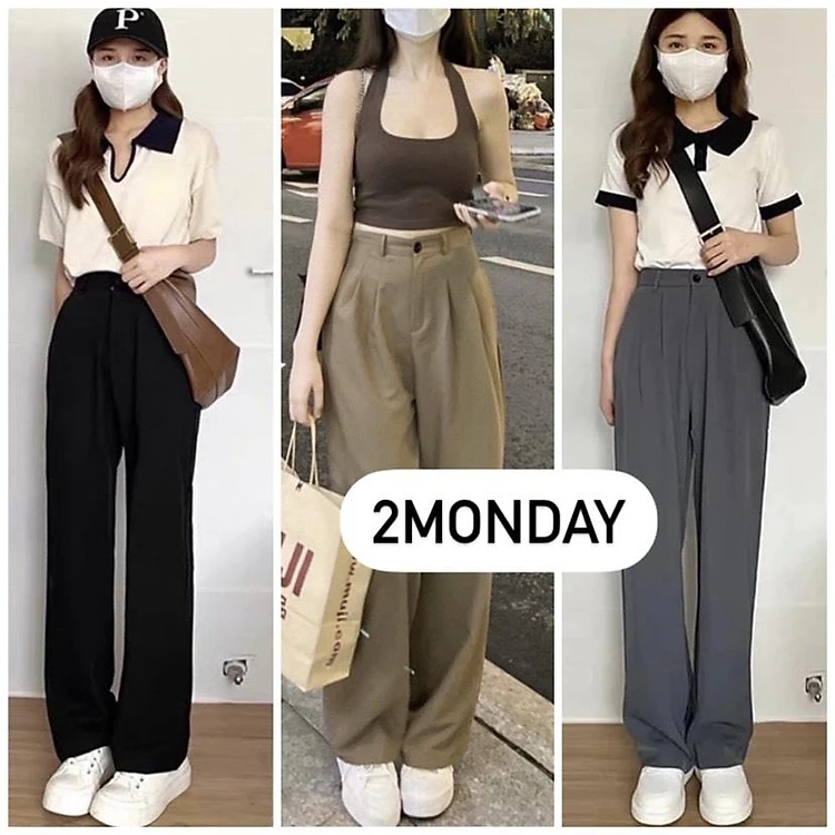 Quần ống rộng màu Ghi đá Hàn Quốc Quần ống suônh tông màu lạ mắt nhiều màu