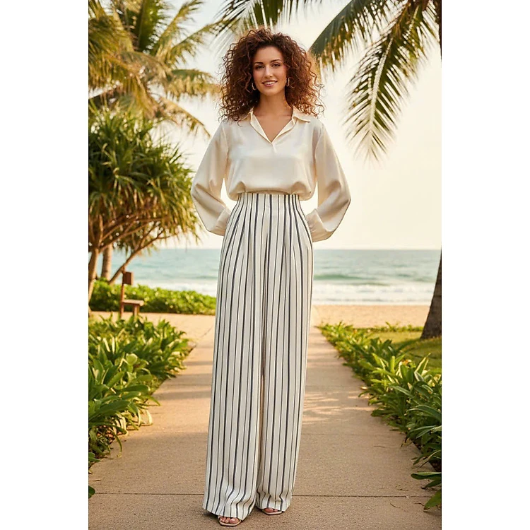 Quần Ống Rộng Palazzo Trắng Sọc Đen Pan030 Thời trang Hity