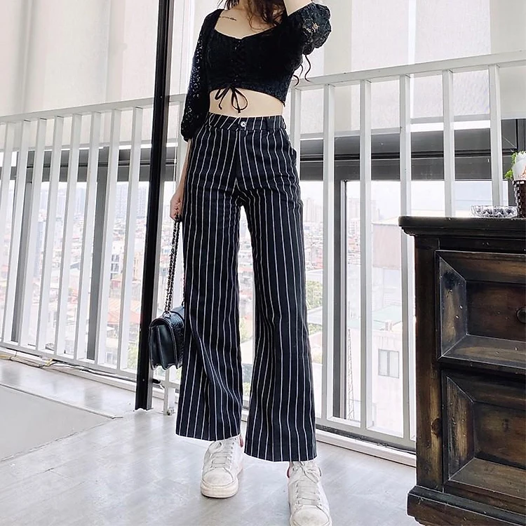 Quần ống rộng xuông cạp cao chống nhăn hack dáng kẻ sọc đen tingoan CHARLIE CULOTTES/KSĐ