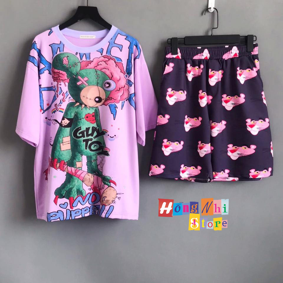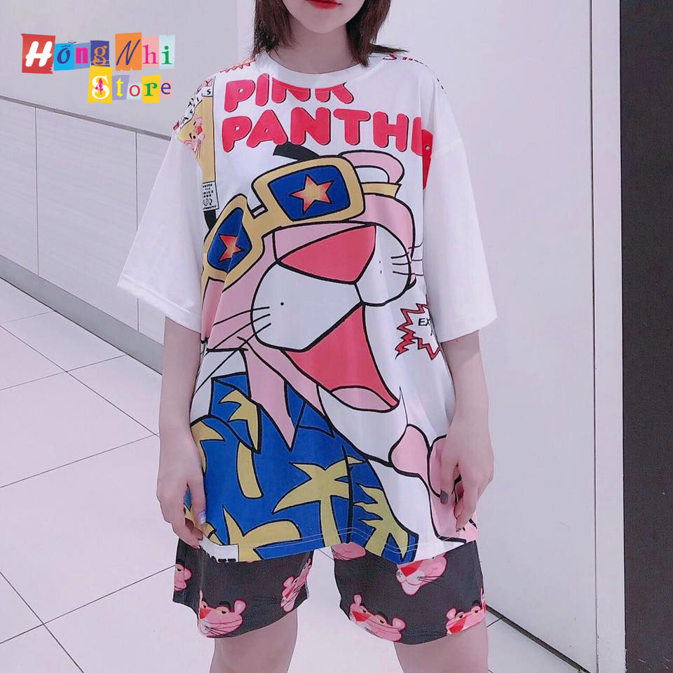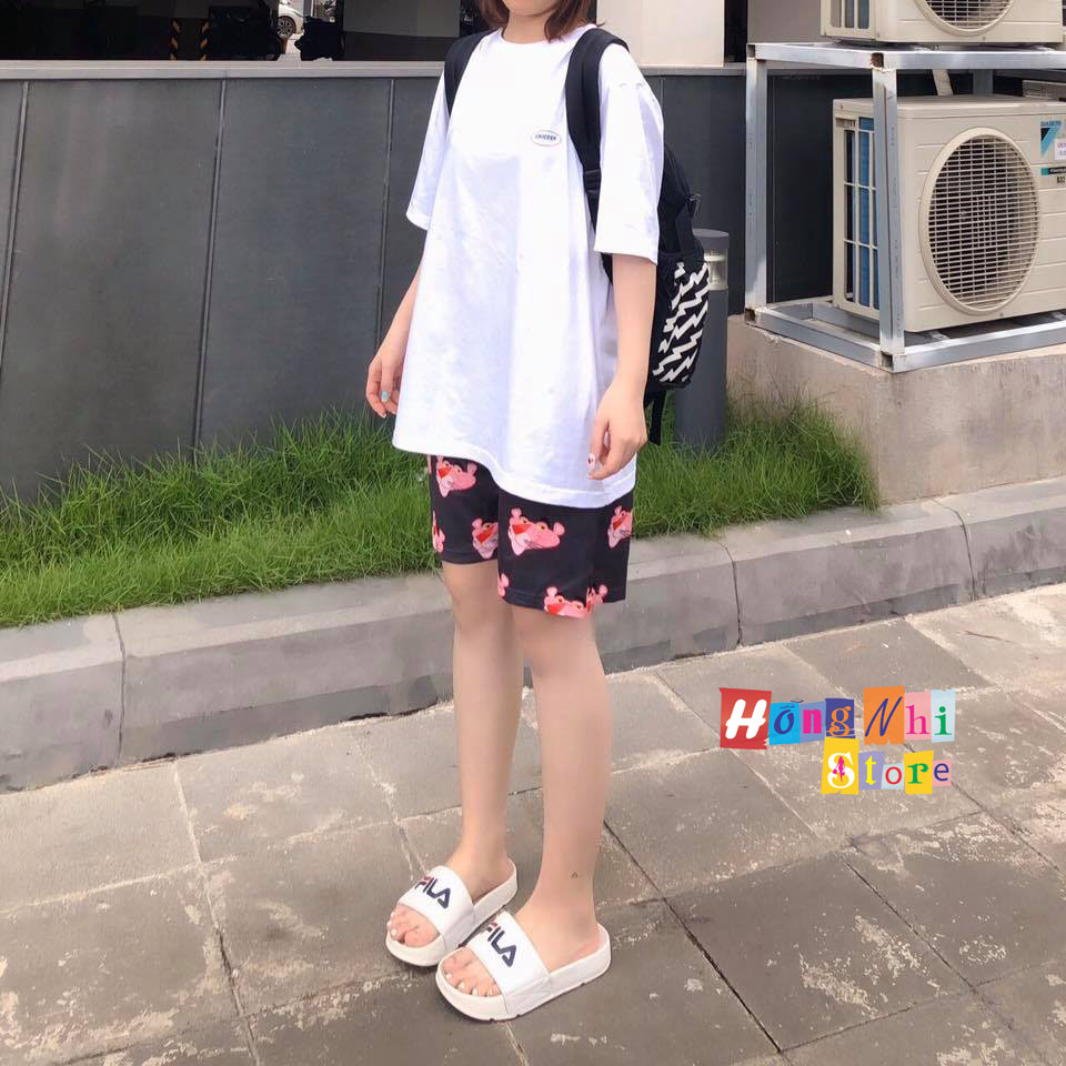 Quần Short Cartoon Unisex Hình Báo Hồng - Quần Đùi Hoạt Hình Siêu Cute - MM