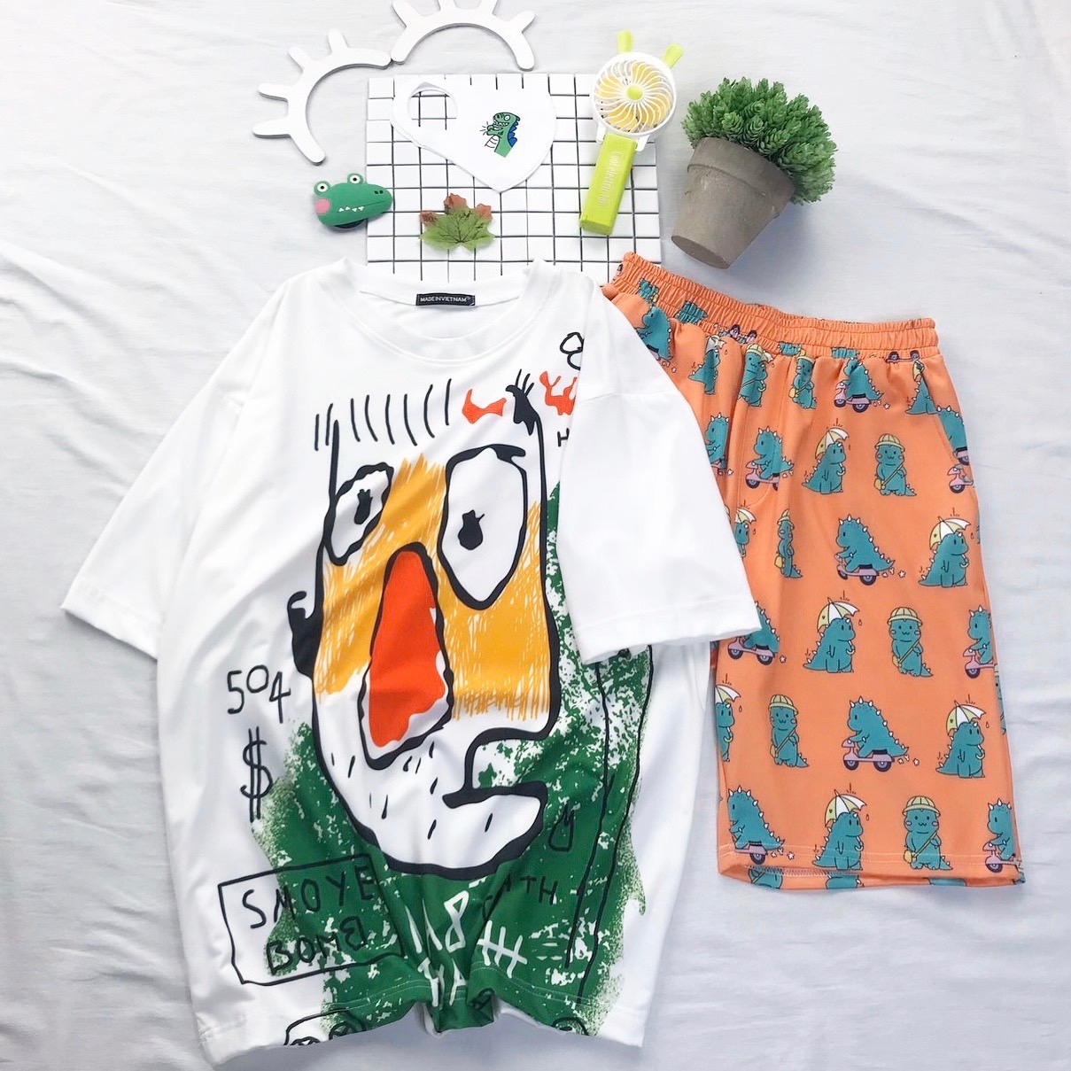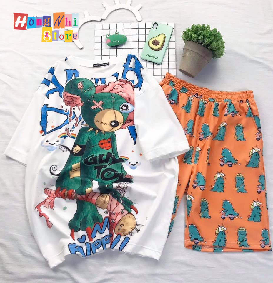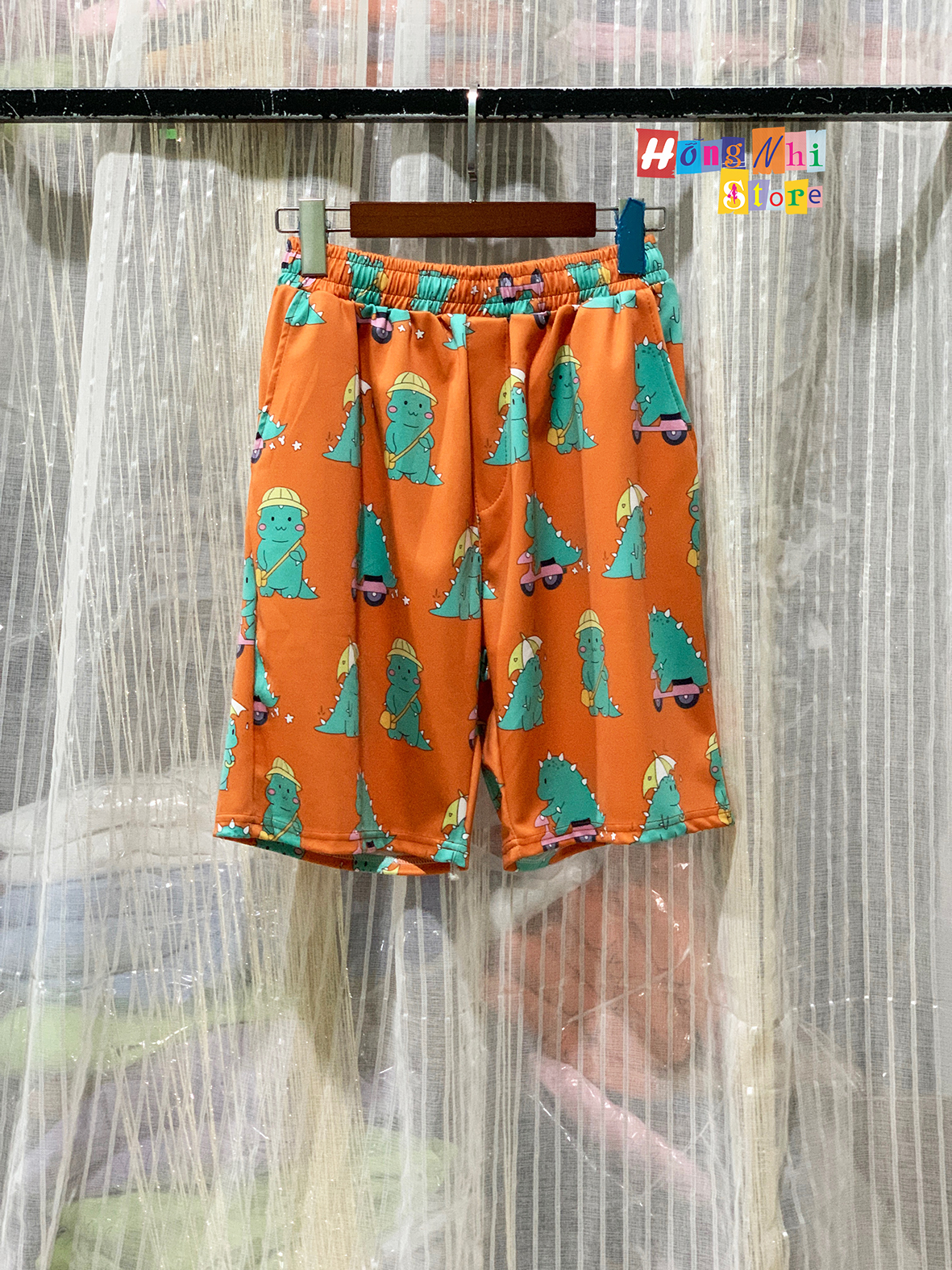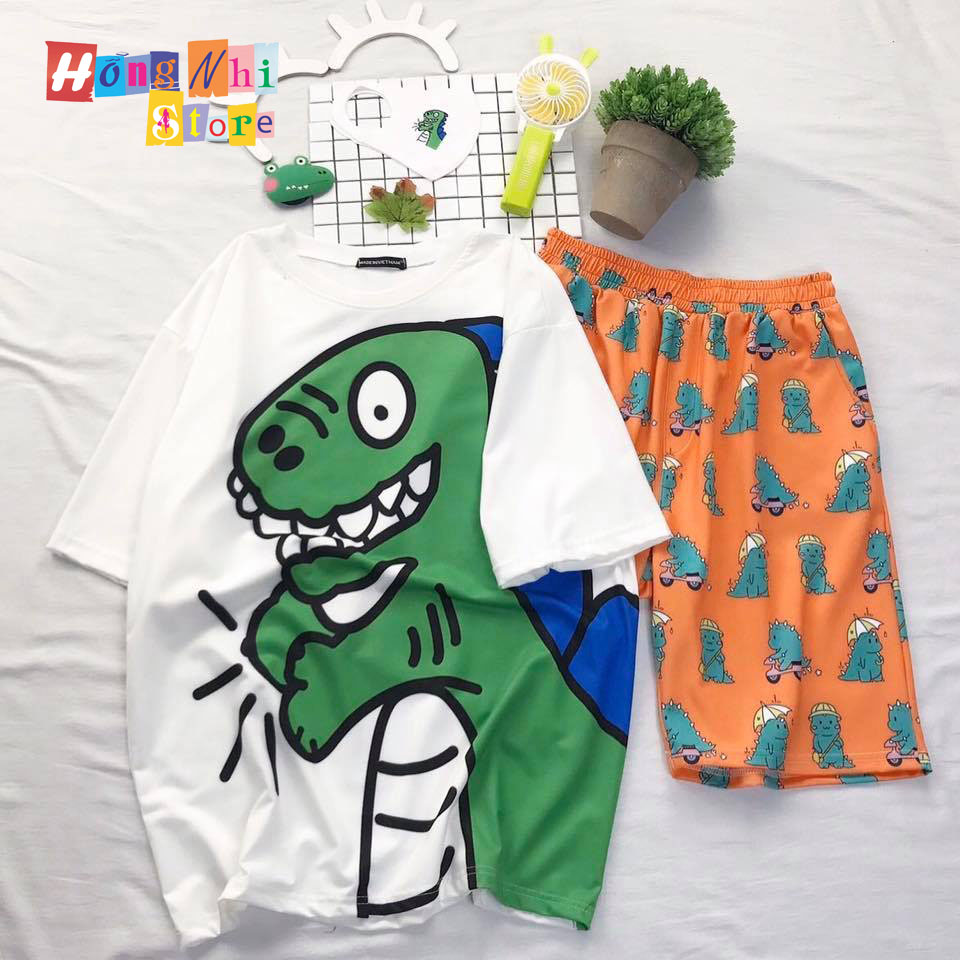 Quần Short Cartoon Unisex Màu Cam Khủng Long - Quần Đùi Hoạt Hình Siêu Cute - MM