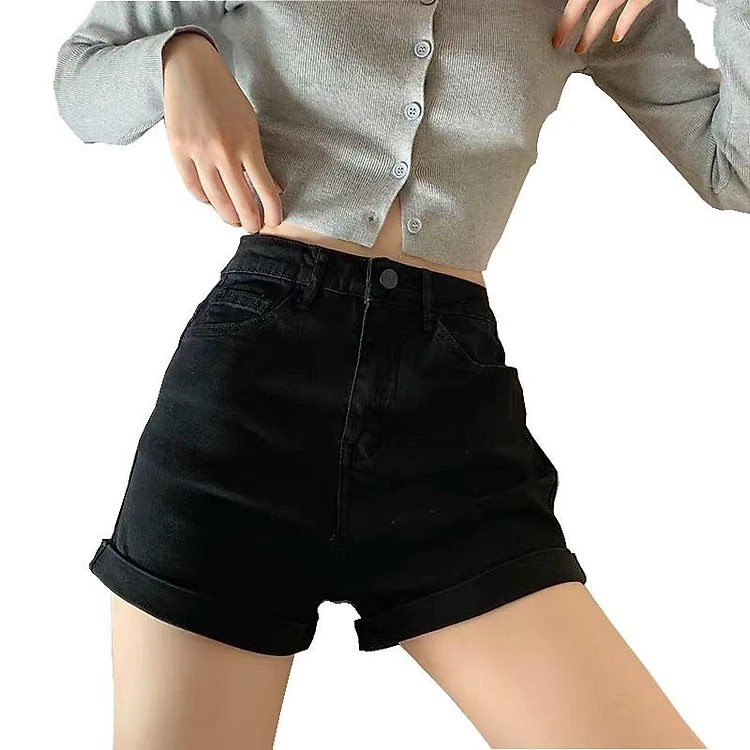 Quần short jean nữ BigSize lưng cao trên rốn, co dãn mạnh, xăn lai, dành cho người béo 60kg~90kg 3825