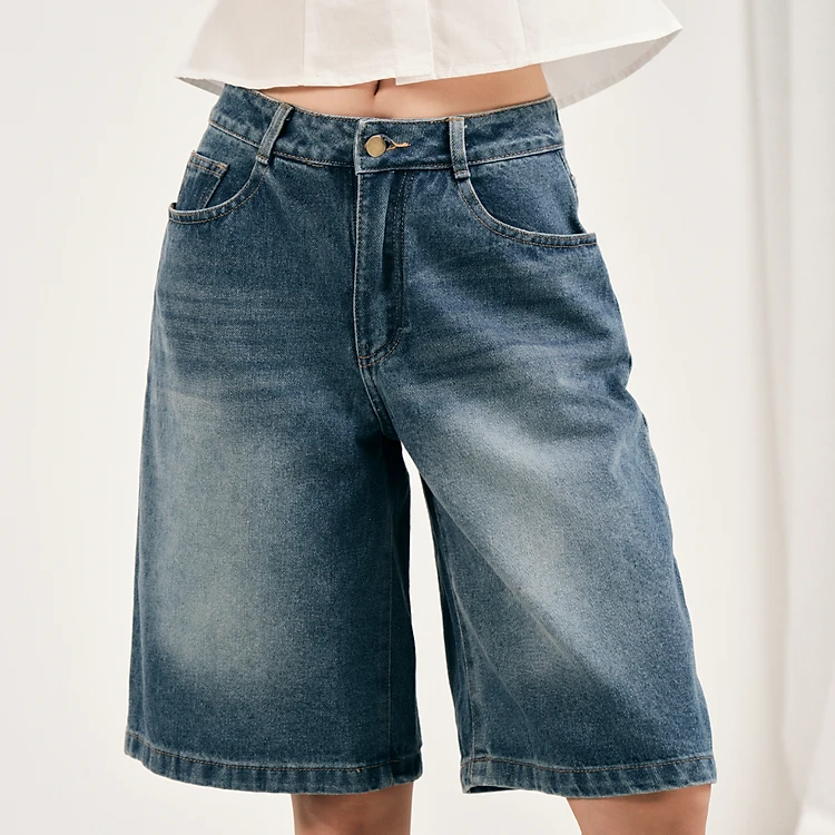 Quần short jeans lửng wash ống rộng phong cách trẻ trung Sani Miều Est.2013