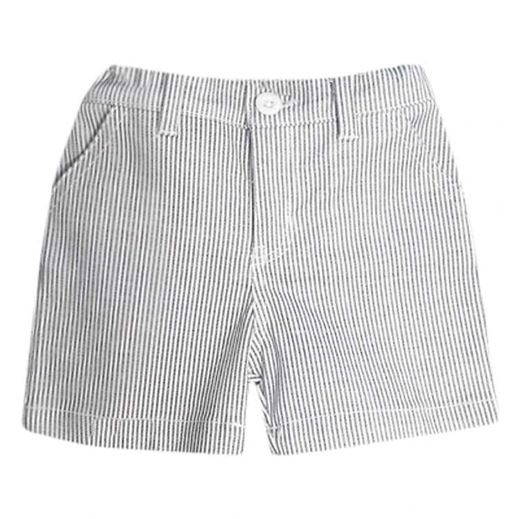 - Quần Short Kẻ Sọc Bé Trai Tiniboo - Trắng Xám được thiết kế với kiểu dáng yếm hai dây bản vừa phối nút, túi trước ngực cùng họa tiết bắt mắt.