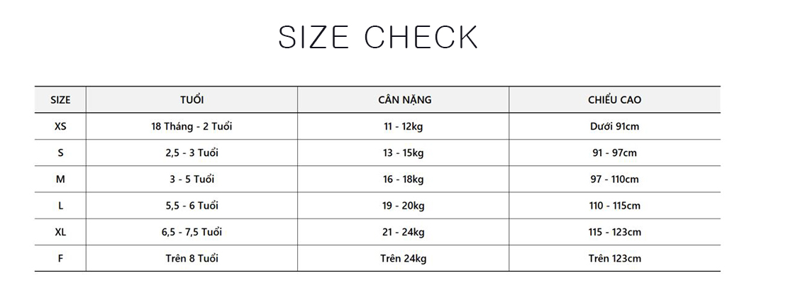 KIỂM TRA SIZE CHO BÉ