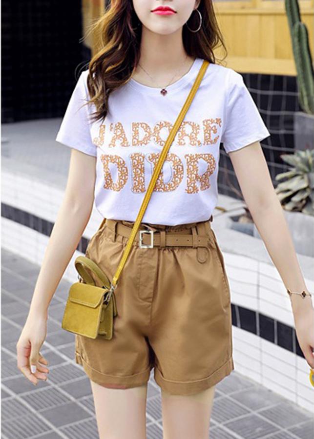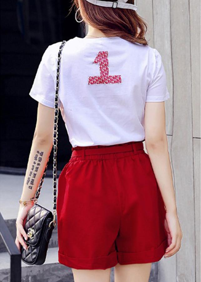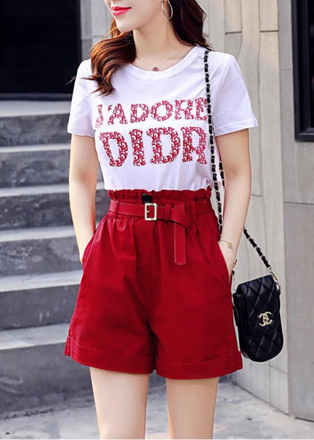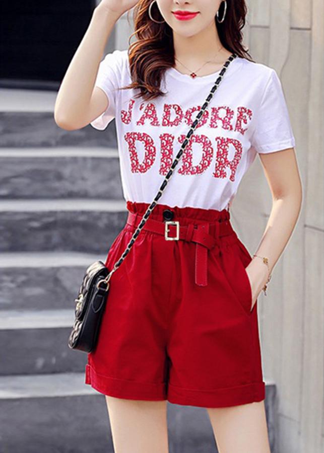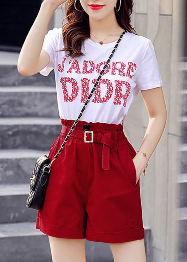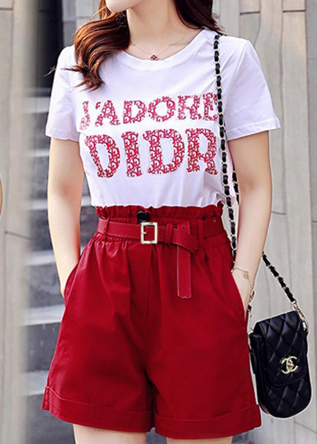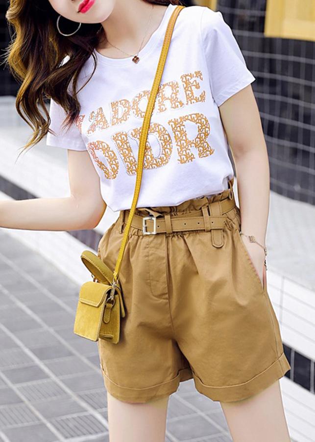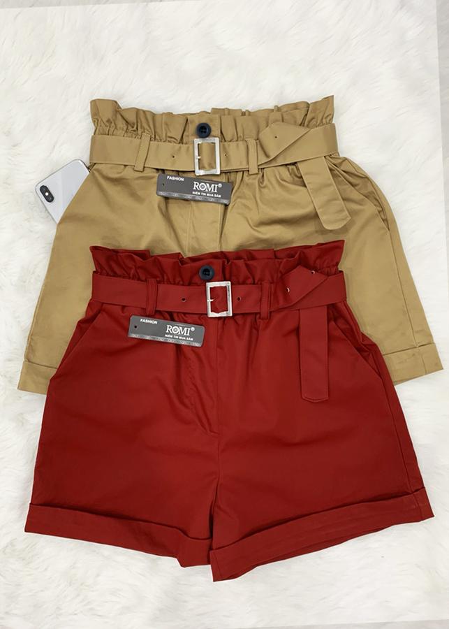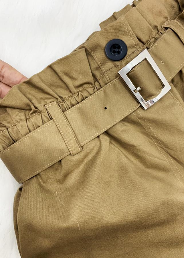 - Thiết kế quần ngắn dáng hơi suông, lai lật, quần lưng thun kèm thắt lưng, chất liệu co giãntạo được cảm giác thoải mái.