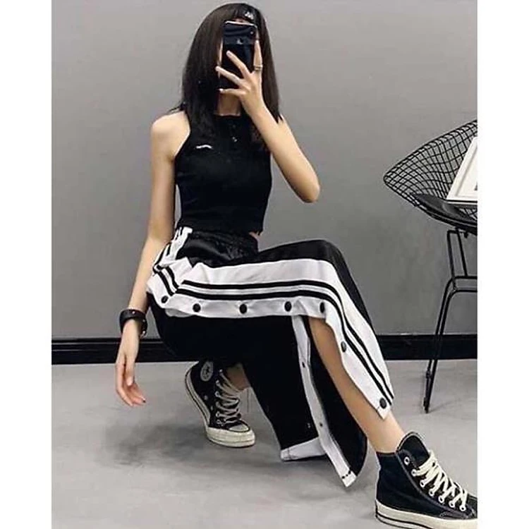 Quần Suông Quần Ống Rộng Xẻ Tà Phối Tàng Nút 2 Bên Sườn Xinh Xắn - Shopthienteen