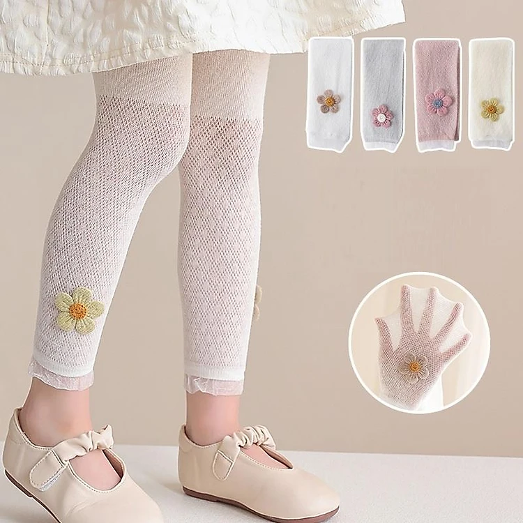 Quần tất không bàn cho bé gái, quần legging lưới mỏng, co giãn 4 chiều đính nhiều họa tiết size từ 1 đến 10 tuổi