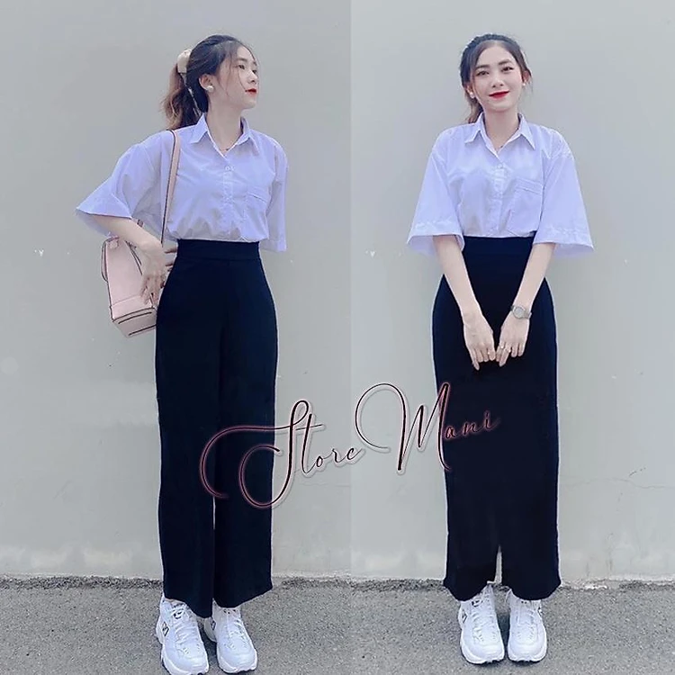 Quần tây ống rộng nữ đi học lưng cao khoá sườn dáng suông vải tuyết mưa màu đen học sinh sinh viên cực tôn dáng