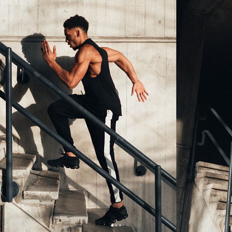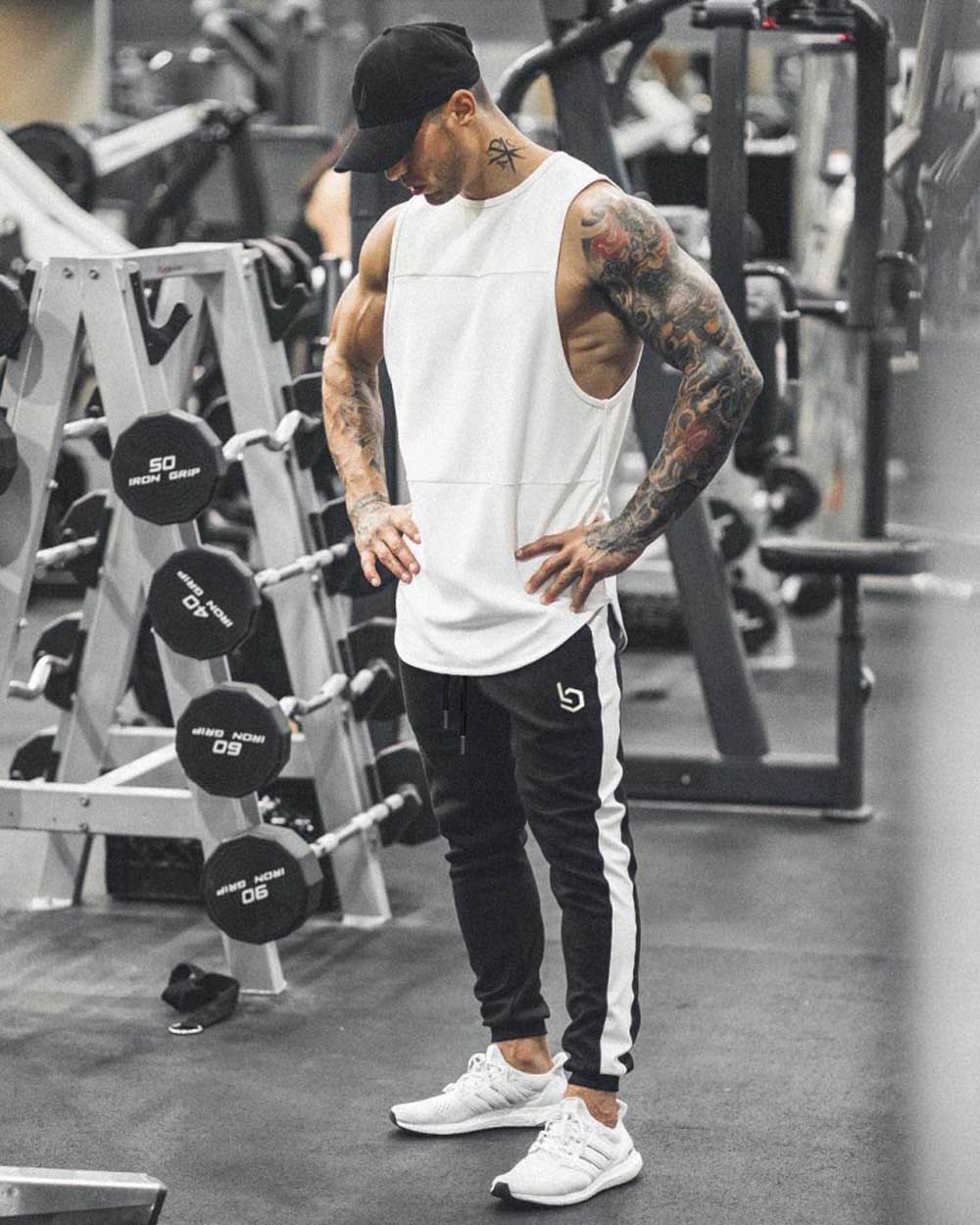 - Quần gym nam làm từ chất liệu vải cotton pha polyester mềm mịn, thoáng khí, thông gió