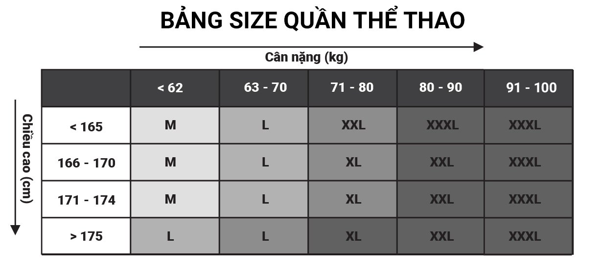 | Kích thước | M (<62kg), L (63 - 70kg), XL (71 - 80kg), 2XL (80 - 90kg), 3XL (90 - 100kg) |