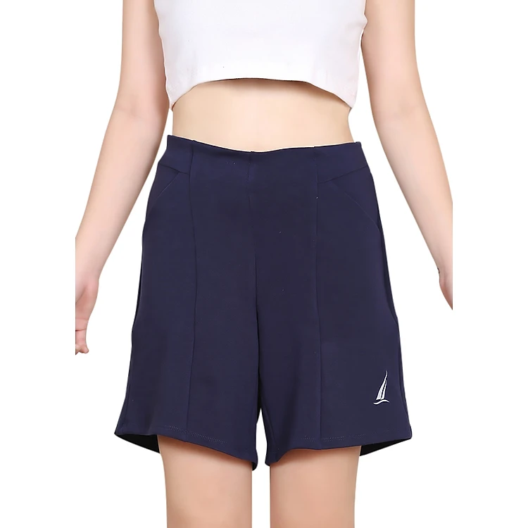 - Thiết kế lưng thun dễ mặc, kiểu dáng suông, túi xéo hai bên cùng màu xanh đen thời trang giúp bạn nữ thêm năng động và khỏe khoắn.