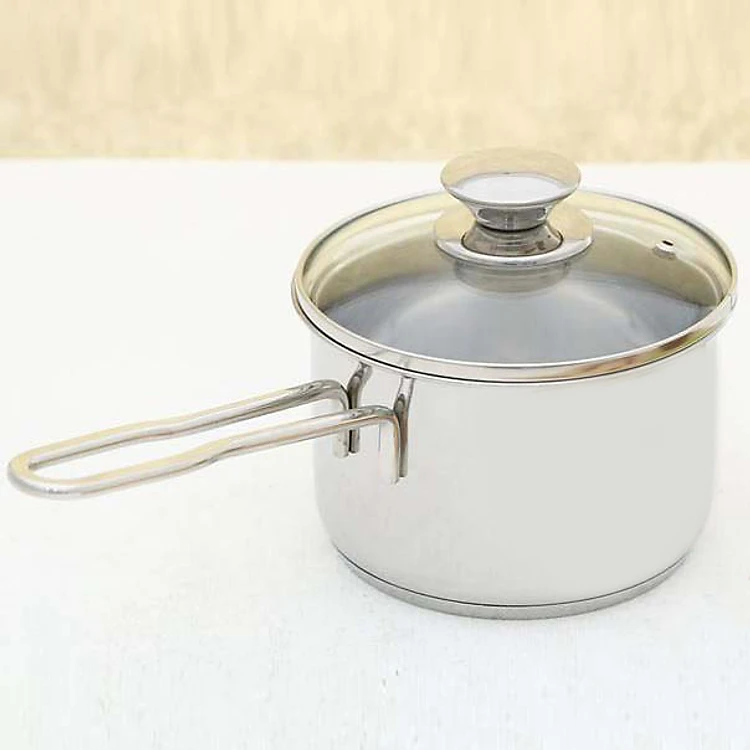- Nồi được làm bằng inox 430, ít bị oxy hoá, độ dày gần 0.6 mm, giúp làm nóng nhanh, thích hợp nấu cháo, nấu canh lượng ít. Nồi có tay cầm quánh chắc chắn, dài, tuy nhiên không bọc nhựa cách nhiệt, có thể hơi nóng, do đó cần dùng khăn hoặc găng tay để di chuyển nồi.