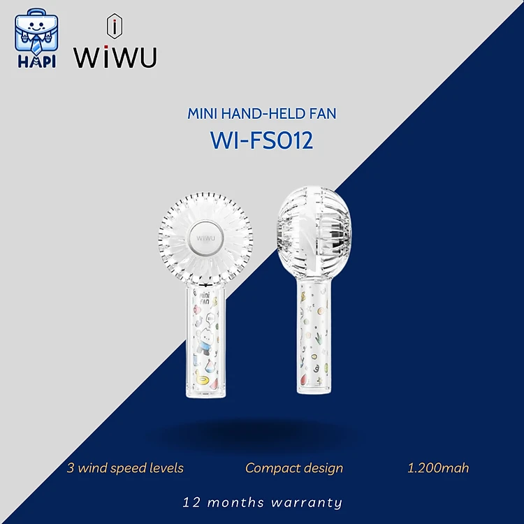 Quạt cầm tay hàng chính hãng WiWU Mini Fan Wi-FS012: Siêu nhỏ gọn, kiểu dáng dễ thương, có LED trang trí