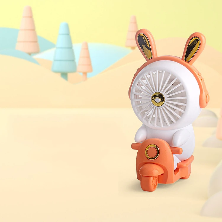 Quạt Cầm Tay Mini, Quạt Sạc Tích Điện Thỏ Lái Xe Xinh Xắn, Dễ Thương Tránh Nóng Mùa Hè (Kèm Dây Sạc USB) Hàng Chính Hãng