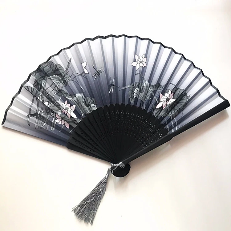 Quạt cổ phong dây tuyến hoa sen xám quạt xếp cổ trúc quạt xếp cầm tay phong cách Trung Quốc quạt trúc cầm tay quạt phong cách cổ trang Trung Quốc in hoa trang trí tặng ảnh thiết kế vcone