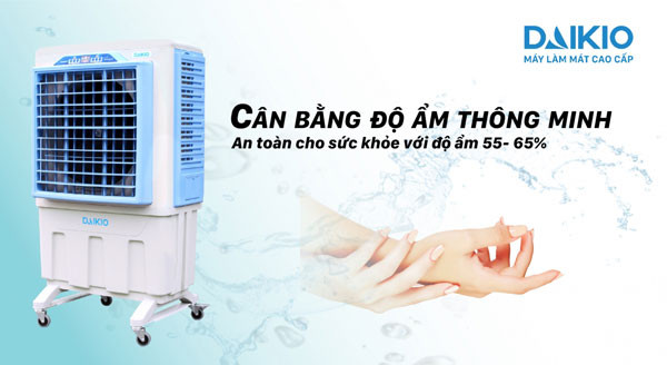 Máy làm mát cao cấp Daikio DK-5000C có hệ thống cân bằng độ ẩm về mức lý tưởng cho da và sức khỏe là 55% - 65%. Nên dù dùng ở không gian mở thì độ ẩm không khí luôn ở mức thích hợp, không bị tác động của độ ẩm trong môi trường.