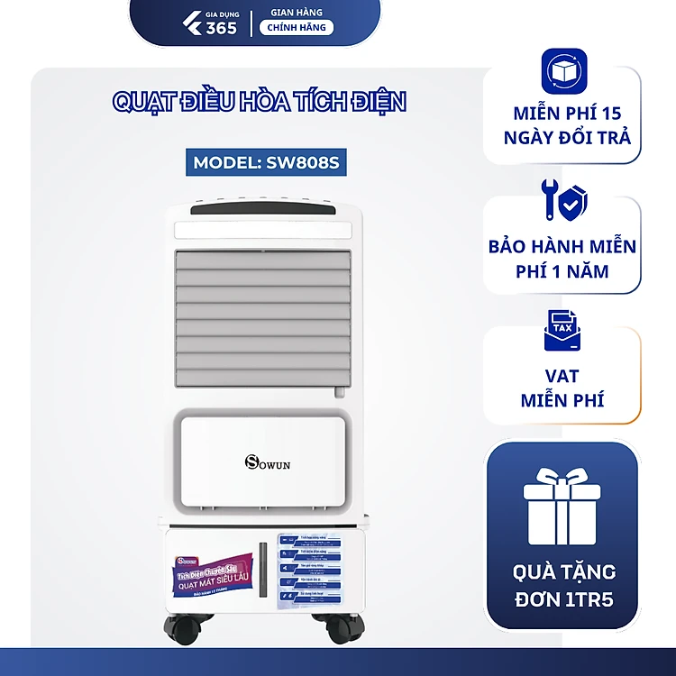 Quạt Tích Điện Điều Hòa SOWUN SW808S, Công Suất 40W Vừa Tích Điện Vừa Làm Mát Bằng Hơi Nước