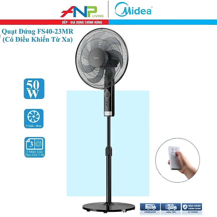 Quạt Đứng 7 Cánh Midea FS40-23MR (Hàng Chính Hãng, Công Suất 50W, Điều Khiển Từ Xa Chỉnh Gió 3 Tốc Độ, Có Chức Năng Hẹn Giờ)