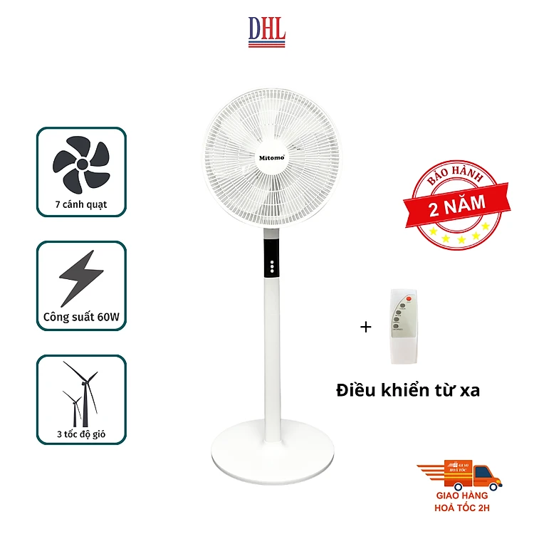 Quạt đứng điện tử có điều khiễn từ xa, hẹn giờ Mitomo FCE-60AEV, công suất 60W, động cơ dây đồng hàng chính hãng - Bảo hành 2 năm