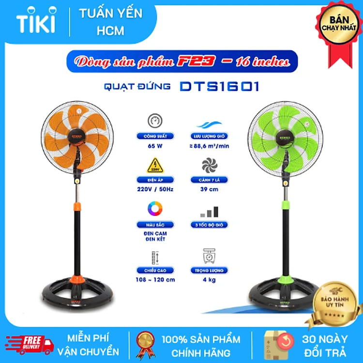 Quạt Đứng Thân Sắt F32 Senko DTS1607 - Màu ngẫu nhiên - Hàng Chính Hãng