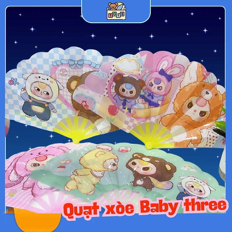Quạt hoạt hình Baby Three mới vui nhộn dễ thương quạt gấp đơn giản cho trẻ em quạt gấp mát mẻ mùa hè