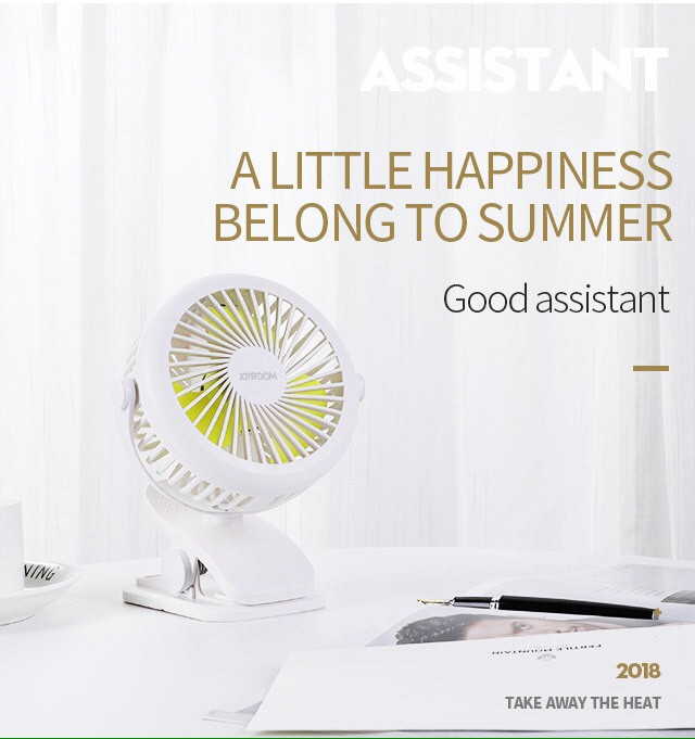 Quạt mini Joyroom để bàn xoay 720 độ kiêm kẹp siêu mát pin 2000mAh trang bị chức năng gió tự nhiên