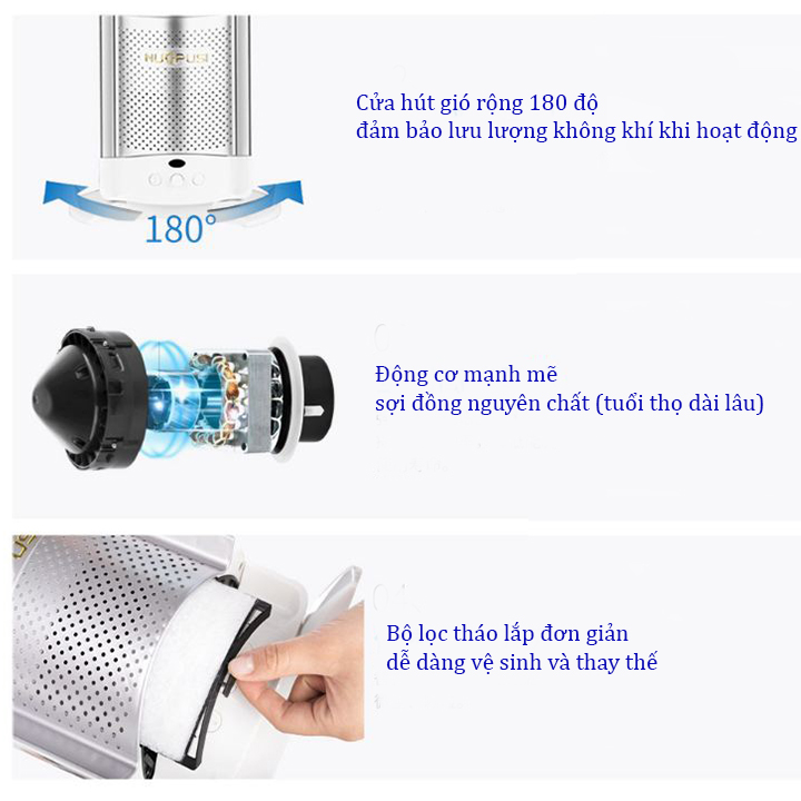 - Cửa hút gió vào rộng 180 độ, đảm bảo máy hoạt động với luồng không khí mạnh và ổn định, động cơ công nghệ tăng áp mạnh mẽ tiết kiệm năng lượng, các sợi bằng đồng nguyên chất đảm bảo tuổi thọ quạt dài lâu , bộ lọc dễ dàng vệ sinh và thay thế
