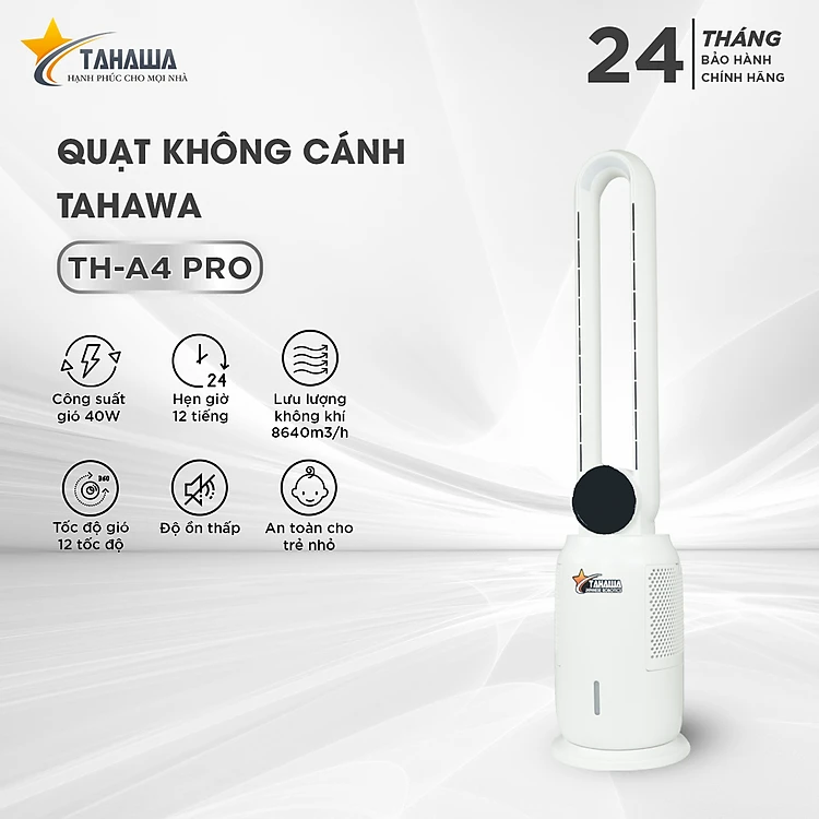 Quạt không cánh TAHAWA TH-A4 PRO Quạt bù ẩm bằng hơi nước khử mùi, bộ lọc Hepa lọc bụi mịn 2.5 pm, đèn led cảnh báo chât lượng không khí, công nghệ UVkhử khuẩn không khí hiệu quả. tích hợp 3 trong 1 giúp cân bằng điều hòa không khí, an toàn cho trẻ nhỏ