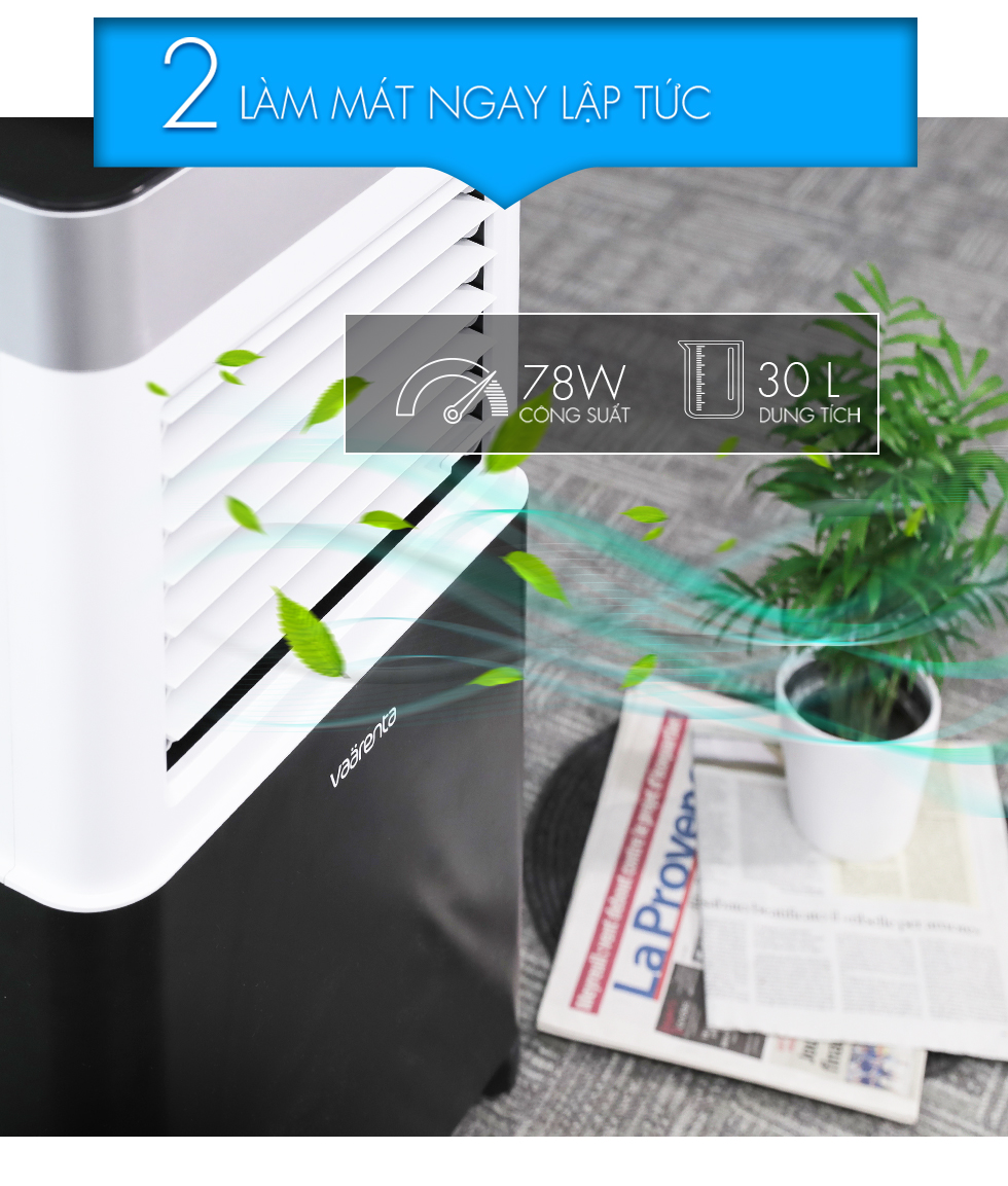 Quạt VAARENTA làm mát nhanh chóng: với công suất 78W, bình chứa 30L
