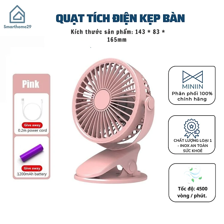 Quạt Mini Để Bàn- Quạt Tích Điện Kẹp Bàn, Cầm Tay, Xoay 720 Độ Tiện Ích - HÀNG CHÍNH HÃNG MINIIN