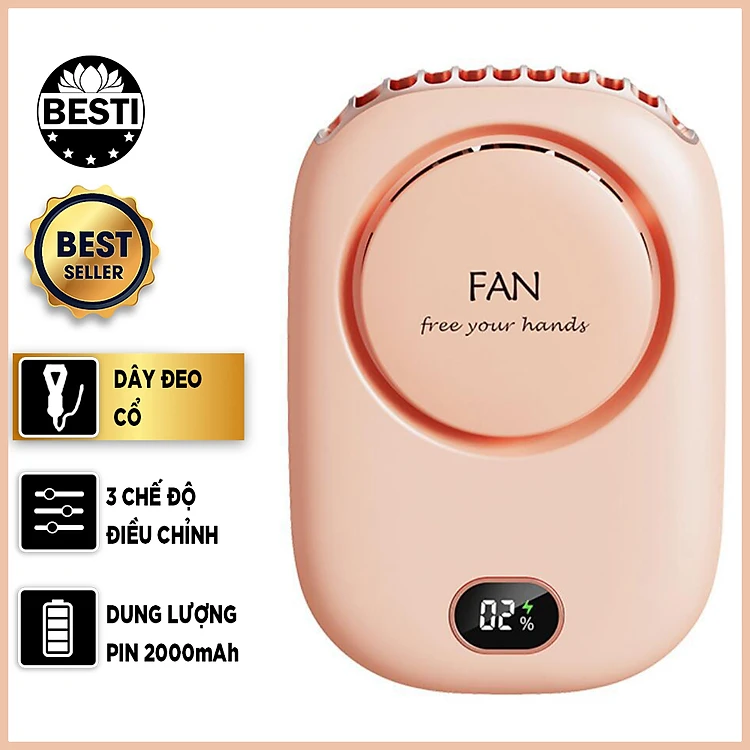Quạt Mini Tích Điện Đeo Cổ Thời Trang Besti Y01, 3 Tốc Độ Gió Siêu Mát, Chạy Siêu Êm, Dung Lượng Pin 2000mAh, Phù Hợp Khi Chạy Bộ, Đi Du Lịch , Văn Phòng, Đi Chơi- Hàng Chính Hãng