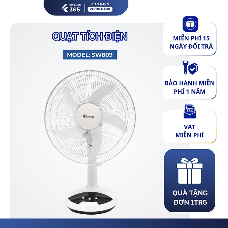 Quạt Tích Điện SOWUN SW809, Thời Gian Hoạt Động Lâu, Có Đèn LED 0.2W Sử Dụng Khi Mất Điện