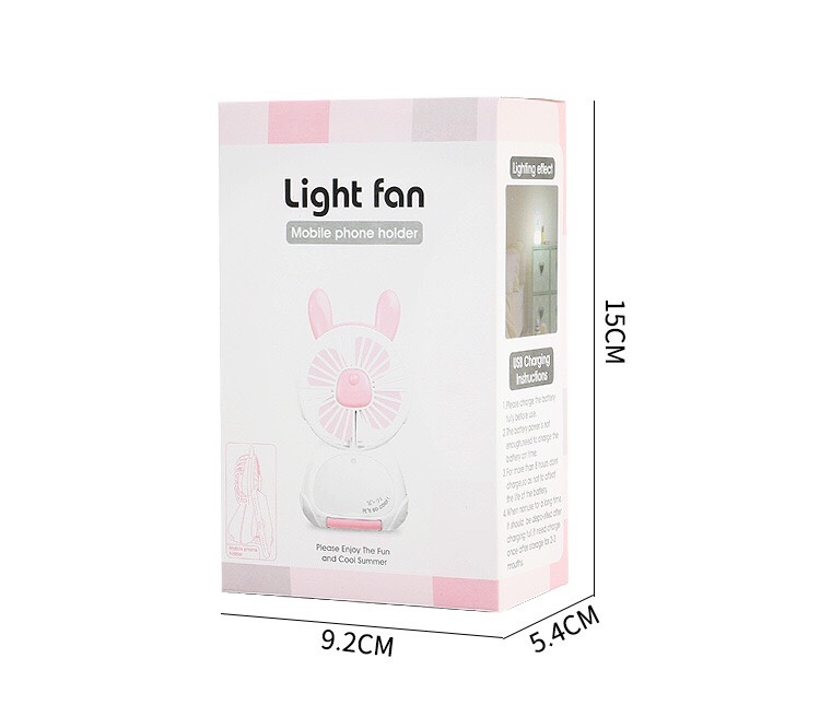 Quạt sạc mini cầm tay có chỗ để điện thoại, có đèn led V13 (hình ngẫu nhiên, màu ngẫu nhiên) tặng kèm 1 gương mini