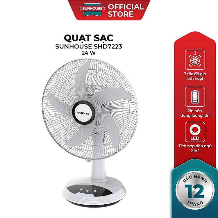 Quạt sạc SUNHOUSE SHD7223 - Hàng chính hãng