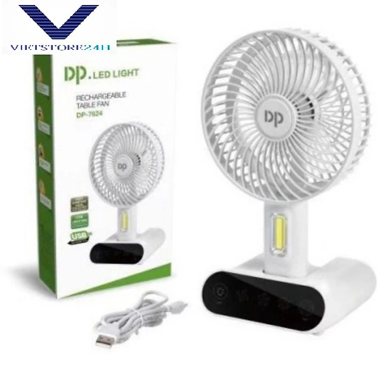 QUẠT SẠC TÍCH ĐIỆN DP-7624 CÓ ĐÈN LED CẢM ỨNG 3 CHẾ ĐỘ- Hàng Chính Hãng