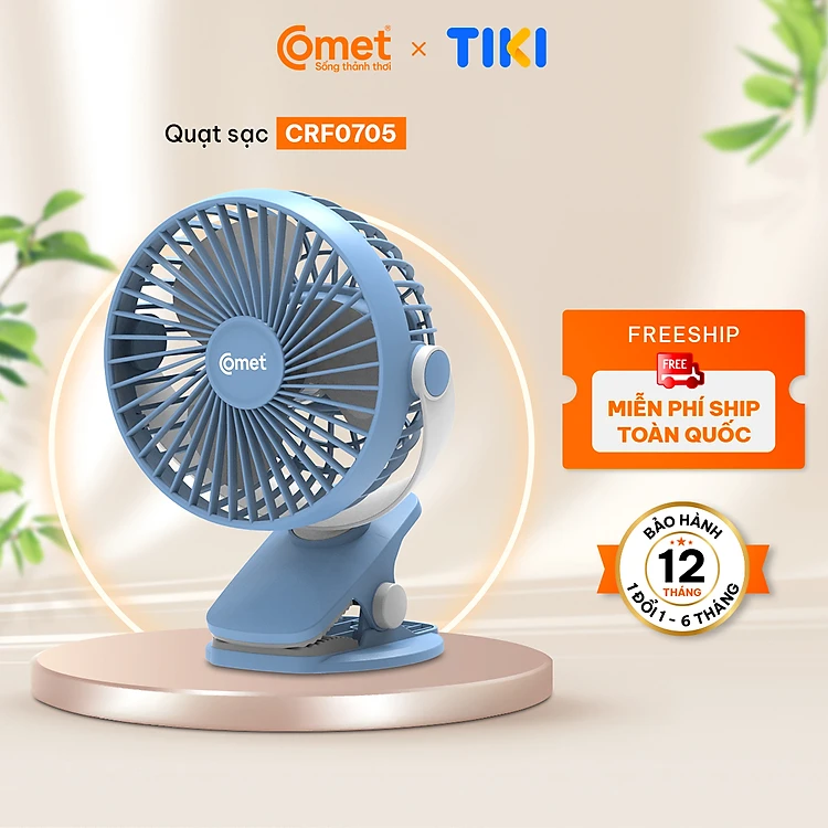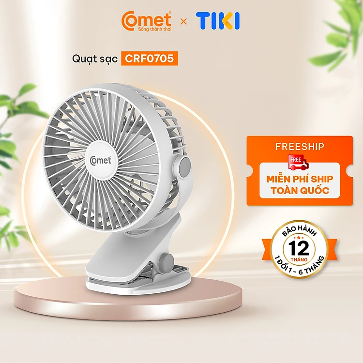 Quạt Sạc Tích Điện Mini Kẹp Bàn COMET CRF0705 5W Xoay 360 Độ pin Lithium 1800mAh