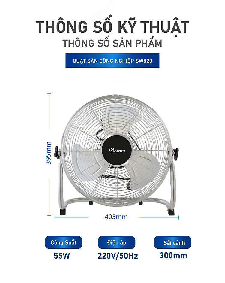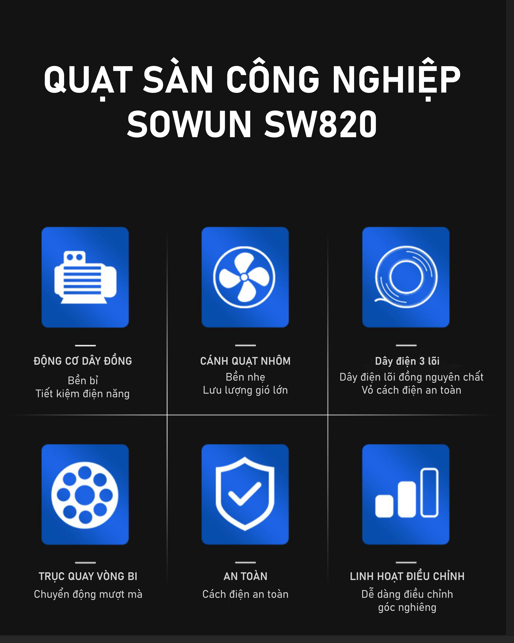 QUẠT SÀN CÔNG NGHIỆP SOWUN SW 820 Hàng chính hãng