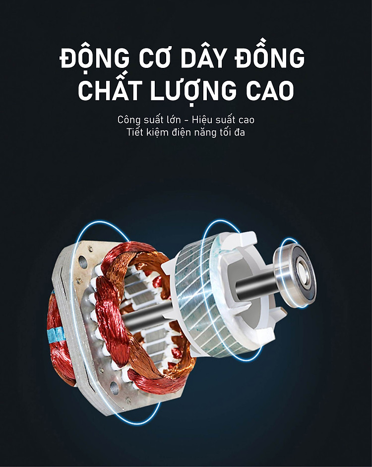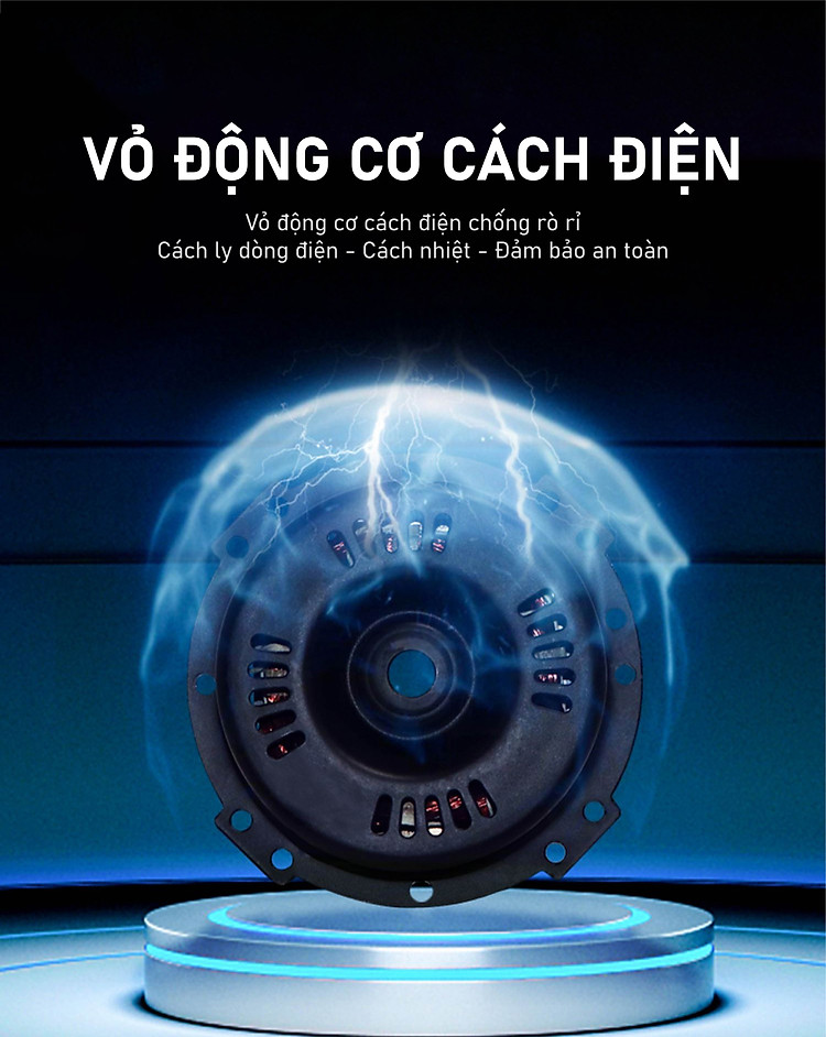 • Vỏ động cơ cách điện, chống rò rỉ , cách ly dòng điện và đảm bảo an toàn cho người dùng