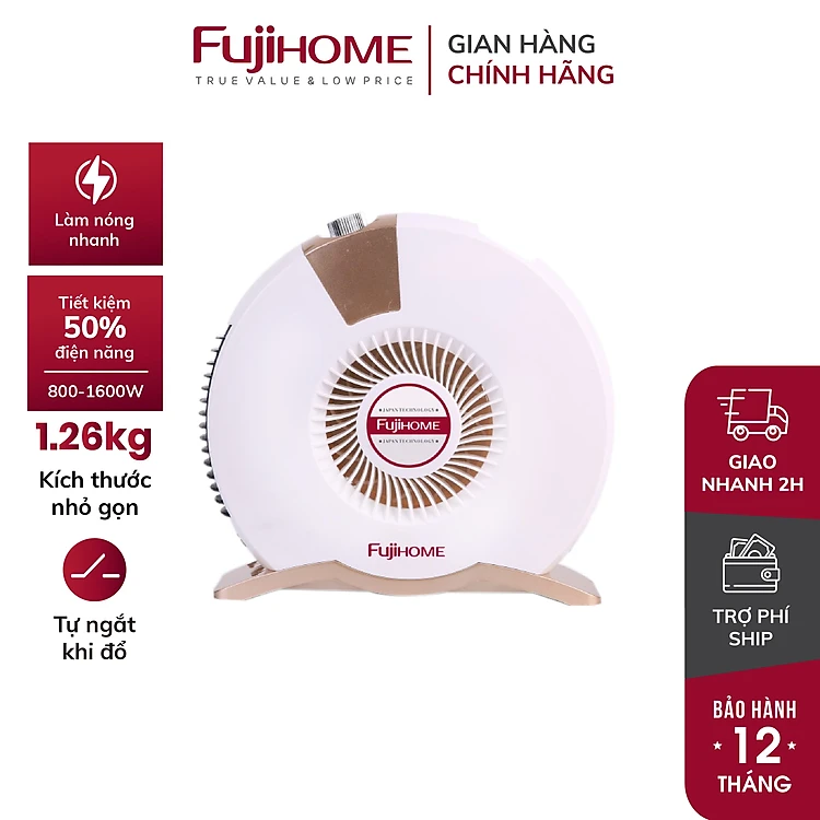 Quạt sưởi đối lưu Mini nhập khẩu Fujihome FH-001 không phát sáng, không đốt oxi - Hàng chính hãng