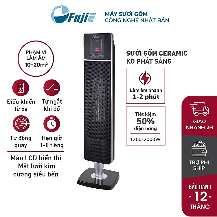Quạt Sưởi Gốm Ceramic Fujie CH-2000 (2000W) - Hàng Chính Hãng