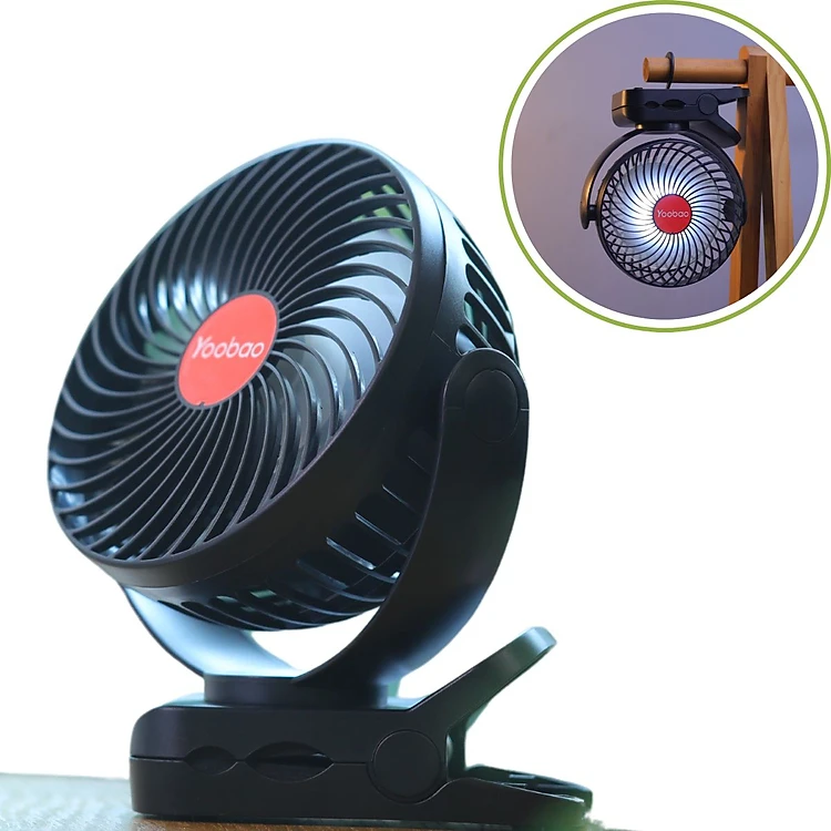 Quạt tích điện đế kẹp YOOBAO F8 8000mAh có đèn led,quạt tích điện kiêm sạc dự phòng 3in1, dùng liên tục 8-30 tiếng - Hàng chính hãng