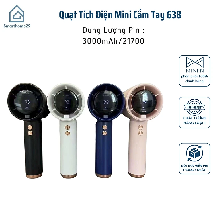 Quạt Tích Điện Mini Cầm Tay 638 – Màn Hình LED, 100 Tốc Độ Gió, Pin 4000mAh Siêu Mát - HÀNG CHÍNH HÃNG MINIIN