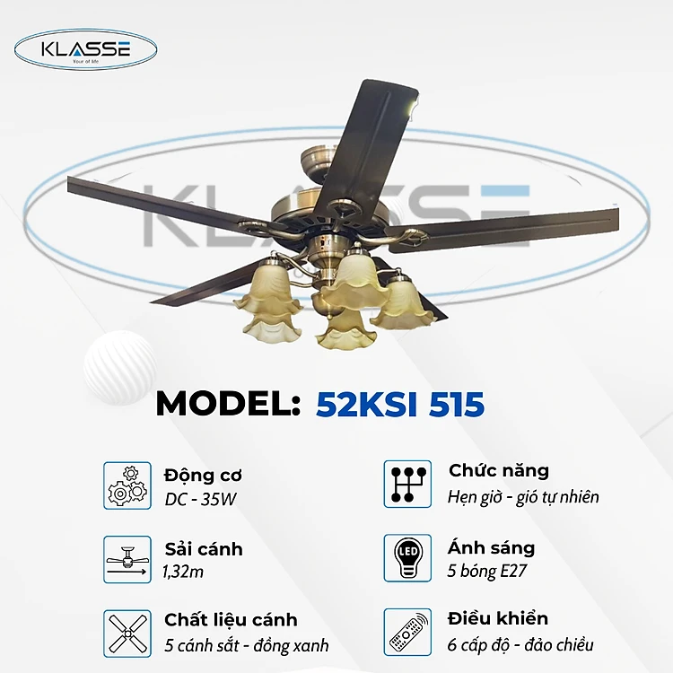 Quạt trần chùm đèn Klasse 52KSI 515 hàng chính hãng